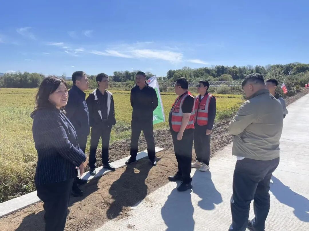 9月17日,省政府督查室二级调研员赵振涛、省发改委农经处副处长李莹莹、省农业农村厅农田处二级调研员刘恒伟一行,在尚志市委常委、副市长郭海波及尚志市相关科局领导陪同下,深入黑建一公司承建的尚志市乌吉密乡五保村八保屯1号田间水泥路工程,实地调研工程建设情况。